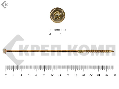 Саморезы Конструкционные, потай Torx, желтый цинк 8.0х180 мм (100 шт)