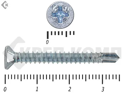 Саморезы для оконного профиля имеют потайные головки со шлицами Ph2 под крестообразные отвертки и насадки соответствующего размера. Благодаря потайной головке и насечкам для раззенковки отверстия, крепеж утапливается в пластике или древесине. Поэтому саморез не выступает выше кромки профиля, даже если закручен с небольшим перекосом.