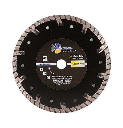 Алмазные диски предназначены для сухой и мокрой обработки прочных строительных и отделочных материалов: бетона, камня, кирпича, мрамора, гранита, черепицы, гипсовых плит, асбеста, шифера, керамики. Диски с алмазным напылением эффективнее абразивного инструмента за счет постоянного диаметра, обеспечивающего стабильную глубину резания, и особой конструкции, позволяющей выполнять работу быстрее и эффективнее. Утолщенная ступица и усиленная основа предотвращают изгибание и деформирование инструмента во время обработки твердых материалов. Промежутки между сегментами и перфорация обеспечивают удаление пыли и шлама из зоны резания.